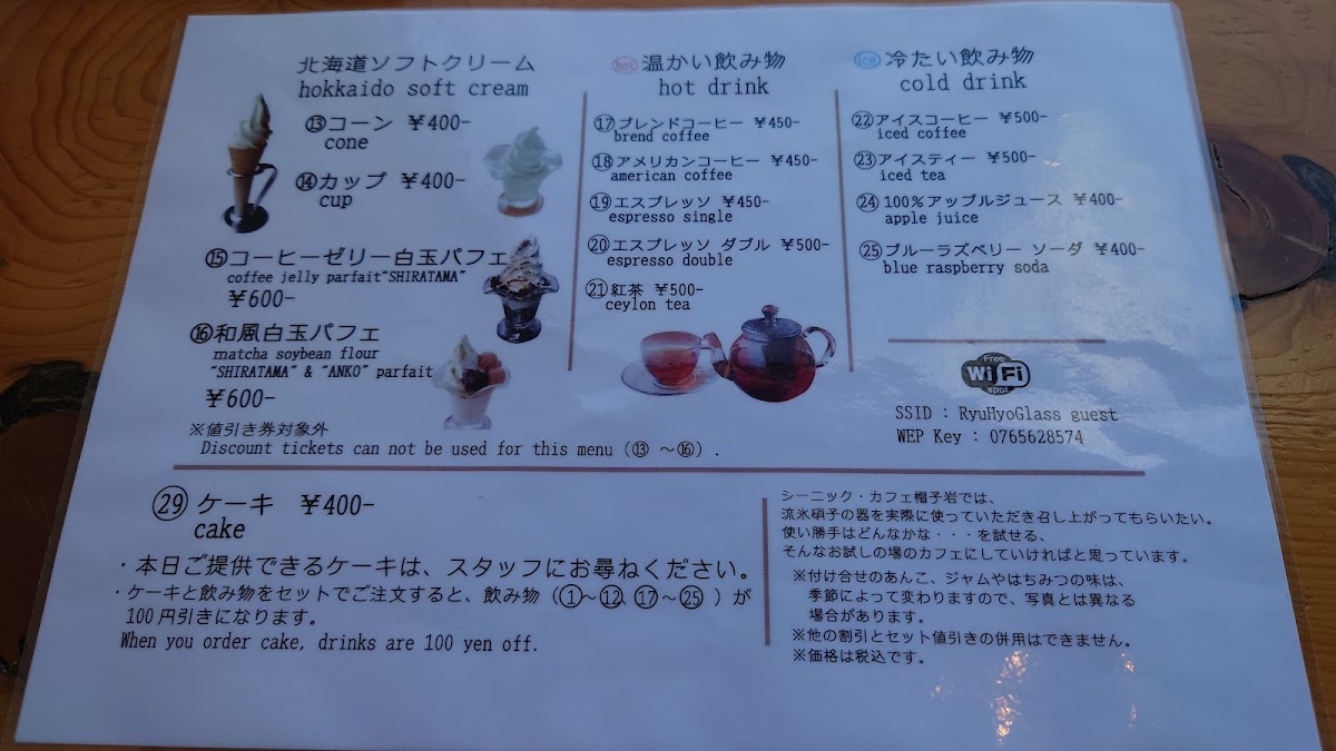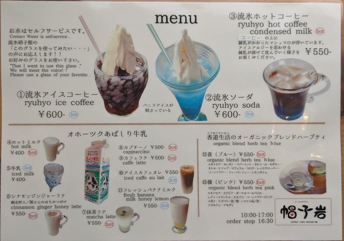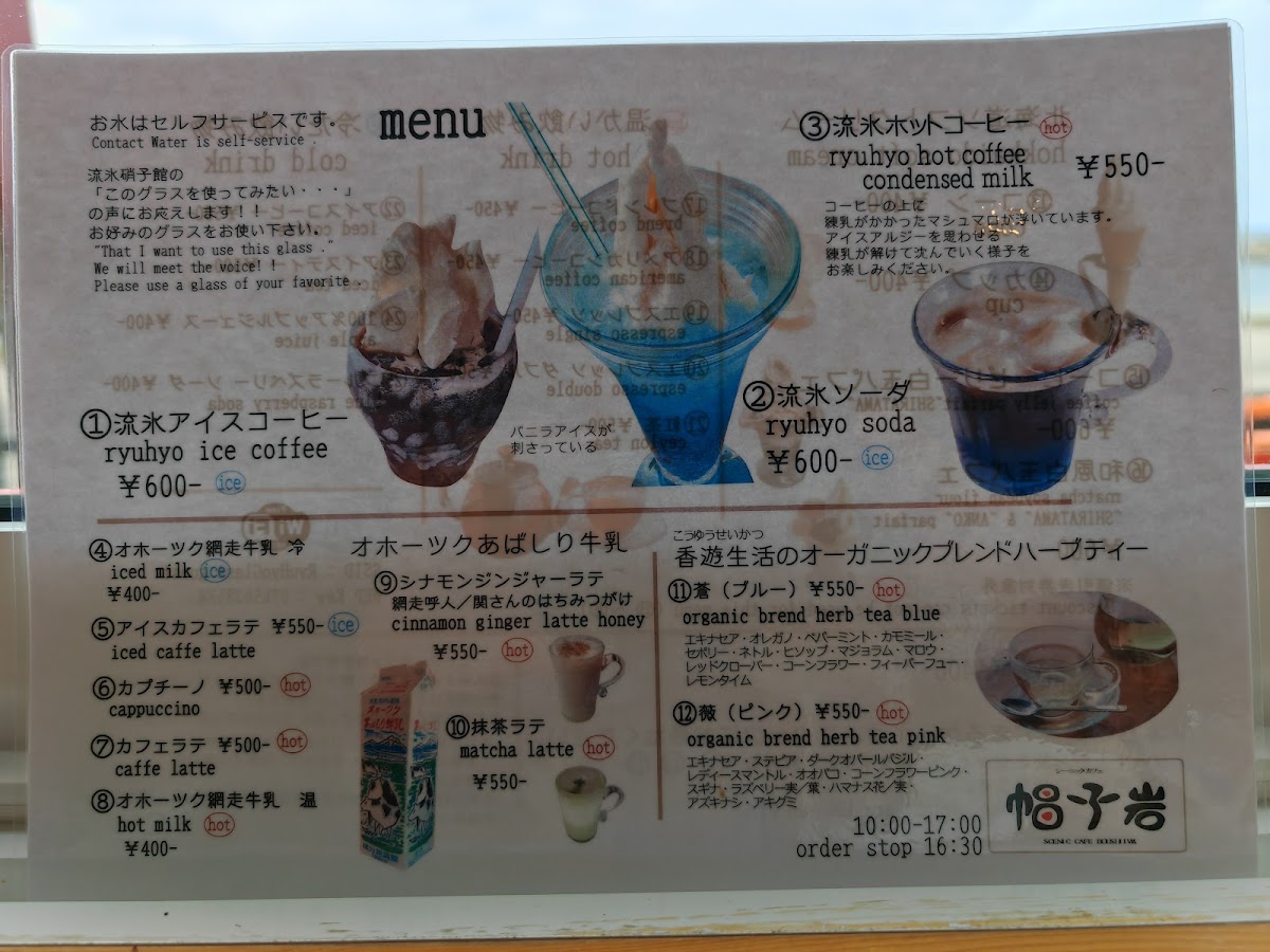 Welcome to Scenic cafe BOUSHI IWA, a delightful haven nestled within a glass blowing shop in Abashiri, Hokkaido. This charming art cafe is not just a stop for coffee; it’s an experience that mesmerizes the senses. The menu features creatively crafted beverages, like the Ryuhyo Iced Coffee, which innovatively combines iced affogato with a beautiful chunk of ice cream, reminiscent of the icebergs nearby.